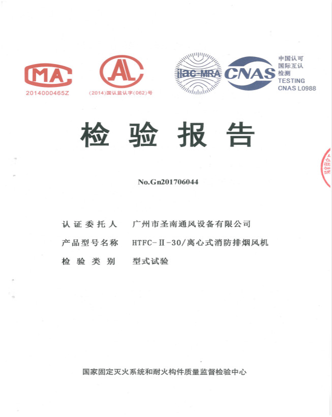 HTFC-II-30 離心式消防排煙風機檢驗報告