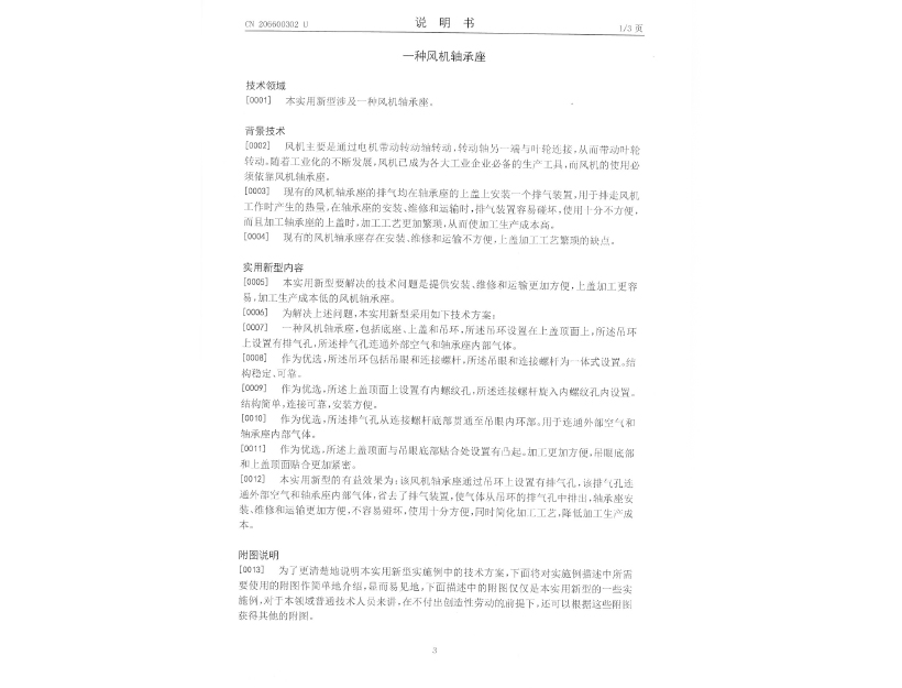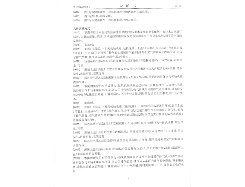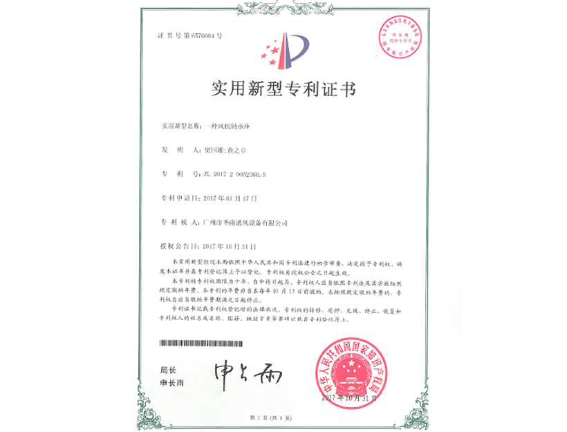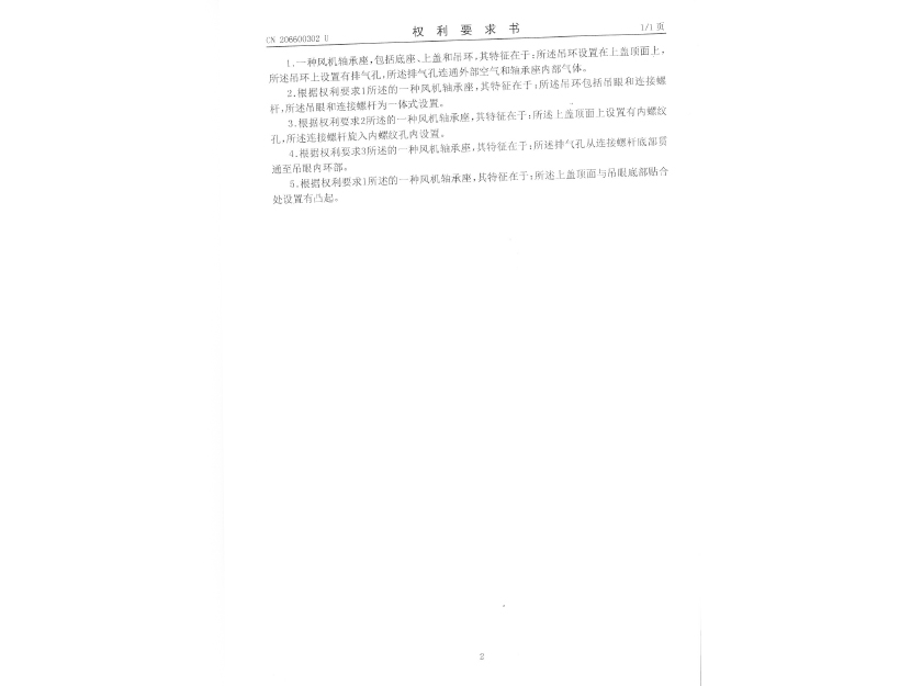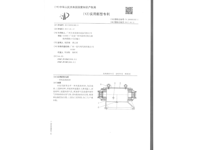 實(shí)用新型專利證書 一種風(fēng)機(jī)軸承座